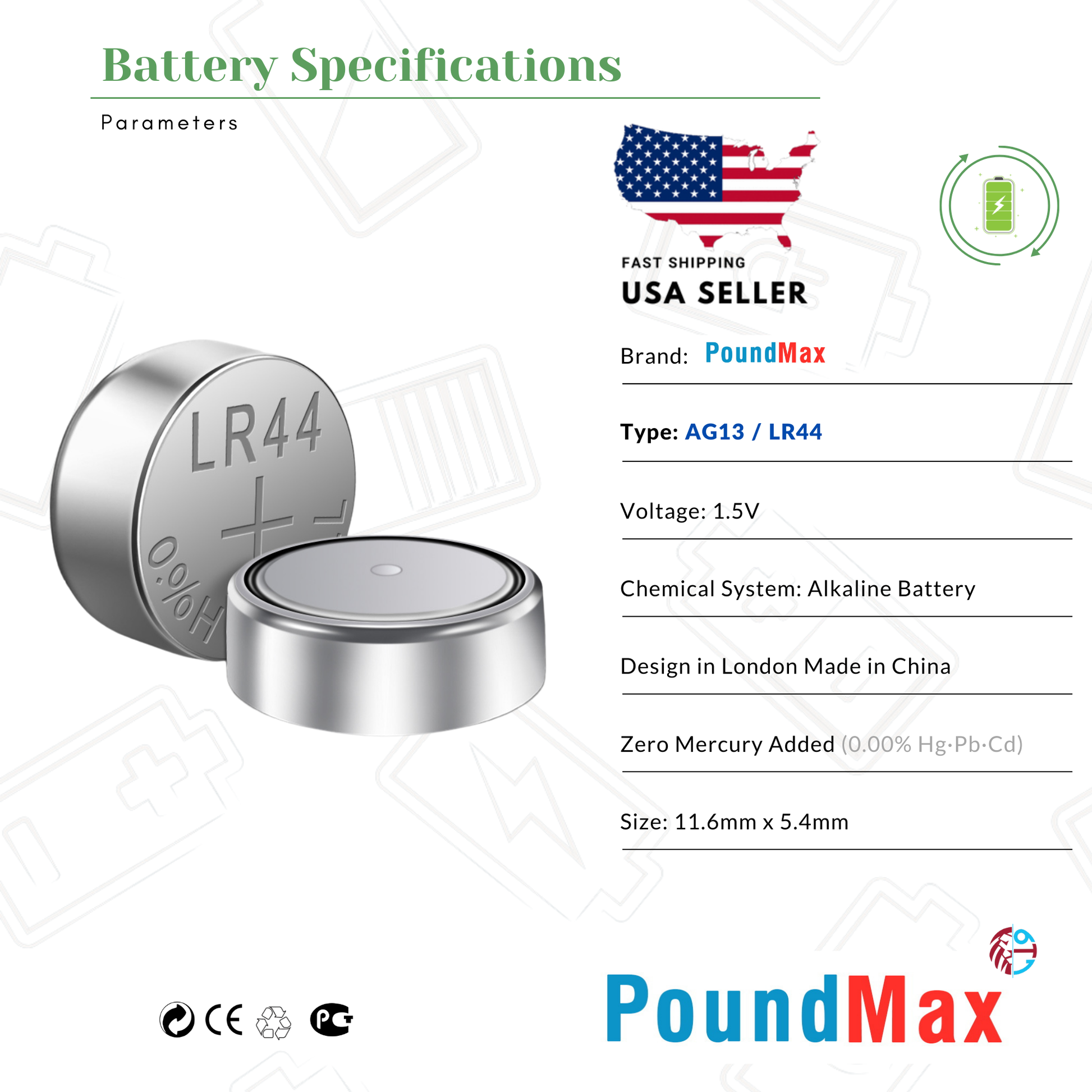 10 x AG13 / LR44 1.5V PoundMax Alkaline Button Cell Battery